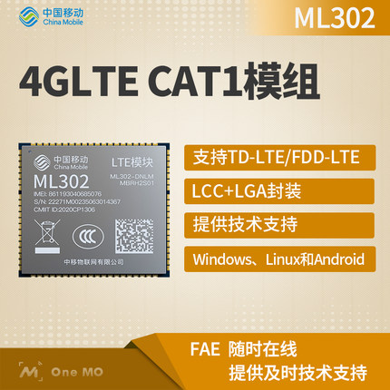 ML302 4G模組 中國(guó)移動(dòng)OneMO LTE全網(wǎng)通無(wú)線通信物聯(lián)網(wǎng)cat1模塊